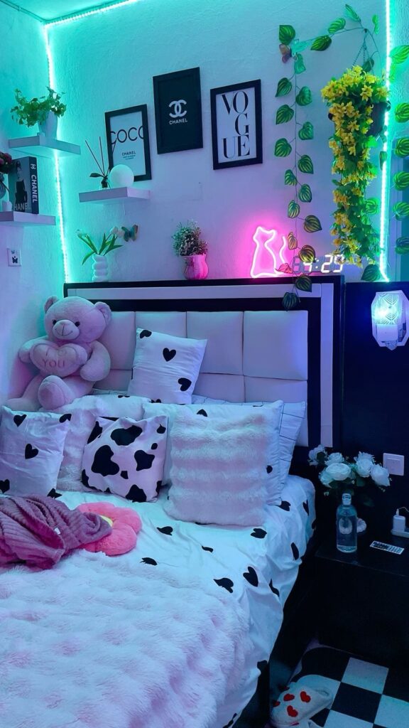 Fairy lights, pendant lamps, or floor lamps can change the mood of your room instantly. Good lighting = instant Pinterest vibes!
